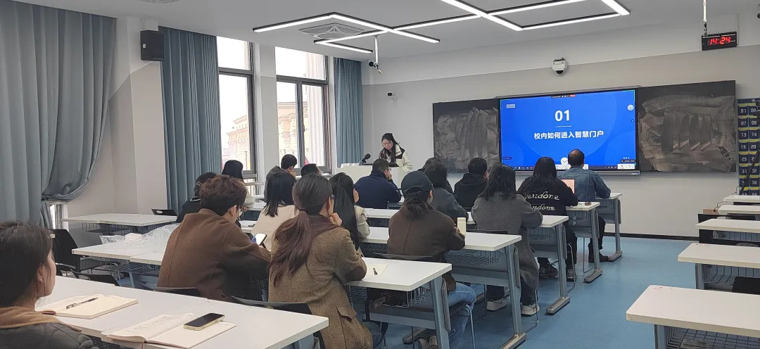 紧接着,网信中心赵良盼老师针对智慧门户开展专项培训,详细讲解校内外各类场景下的门户登录方式,核心业务流程操作,并对日常使用过程中的常见问题进行集中答疑,切实扫清教职工使用障碍,保障智慧校园门户顺畅使用。