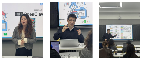 2026年4月3日下午13:30,师生数字化素养系列培训课程(三)在主教学楼智慧教室229如期举行。服装设计学院人工智能与服饰产品设计课程组邀请网络与信息化管理中心郭敦主任,开展了以“聊聊OpenClaw”为主题的交流活动。课程组全体老师线下参会,教务处、图书馆、后勤保障处、保卫处等其他部门老师及感兴趣的学生线上同步参会。